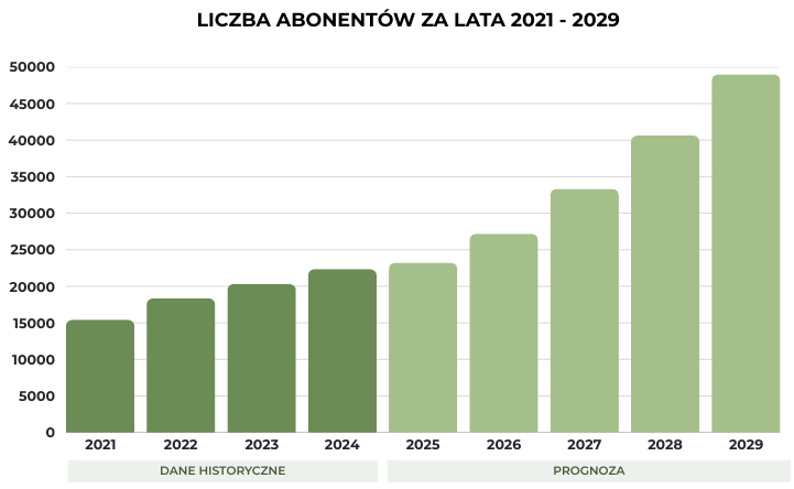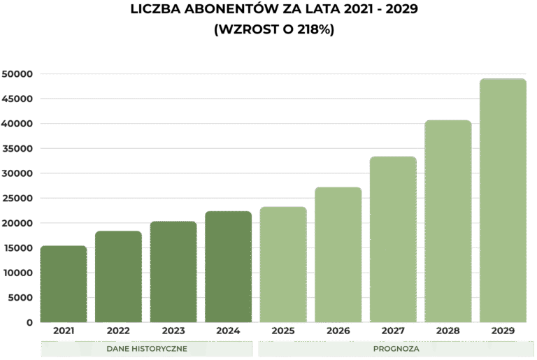 Liczba Abonentów | 15.600 | 18.000 | 20.340 | 23.500 | 29.500 | 37.900 | 45.000 |