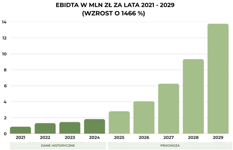 Od 2014 roku nasze przychody wzrosły już o +2 006%, a tylko w ostatnich 5 latach zwiększyły się o +207%. Plany na lata 2025–2029 przewidują dalszy skok – nawet +281% w przychodach i +422% w EBITDA.