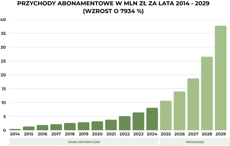 PRZYCHODY abonamentowe | 3.865.000 | 5.095.000 | 6.464.000 | 8.600.000 | 11.700.00 | 16.900.000 | 22.100.000 |
