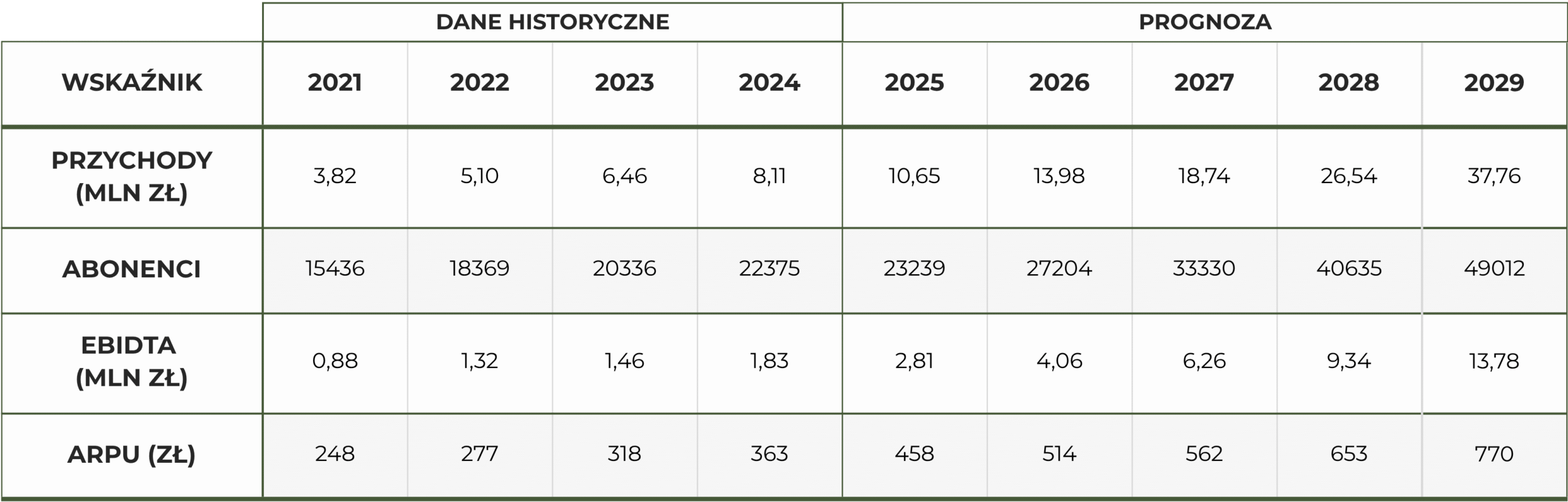 Dane za lata 2025 -2029 stanowią prognozę spółki.